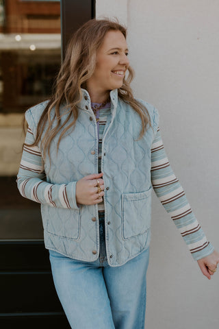 Washed Denim Quilted Vest