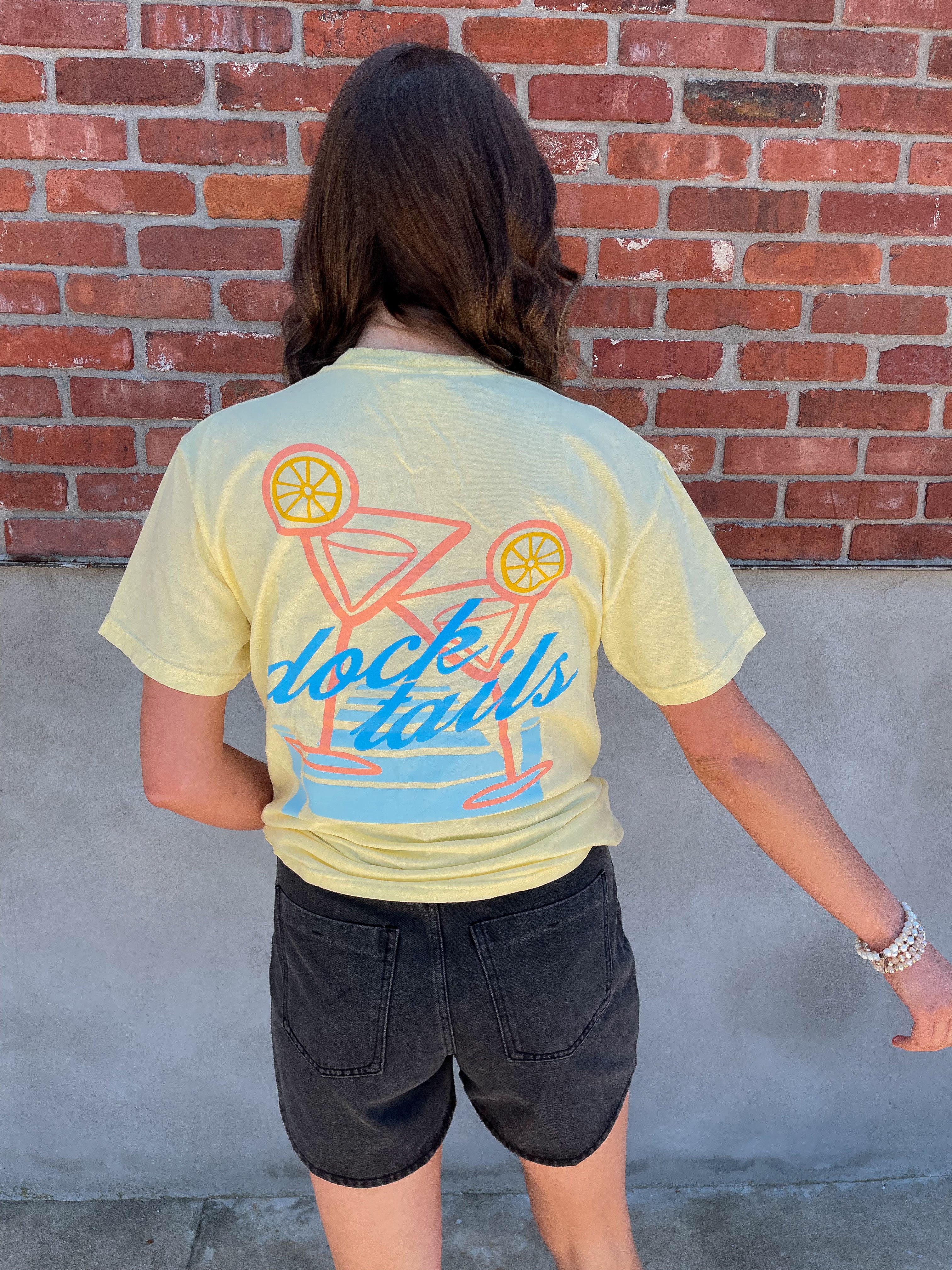Unleash your inner lake-loving spirit with our Dock Tails Graphic Tee! With a fun pop of color and a playful lake graphic, this tee is perfect for sipping cocktails on the dock. And don't worry about sizing, it's true to size for a comfortable fit. Order yours now and make a statement on your next lake day!