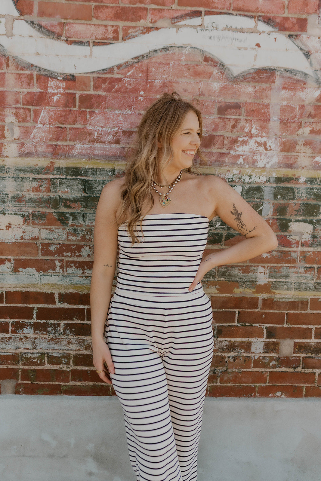 Effortless coastal style meets comfort in this striped two-piece set. The fitted tube top pairs perfectly with wide-leg pants for a relaxed, flattering silhouette. Classic navy stripes bring timeless appeal to any wardrobe. True to size for an ideal fit straight out of the box. Perfect for weekend getaways, casual outings, or lounging at home.