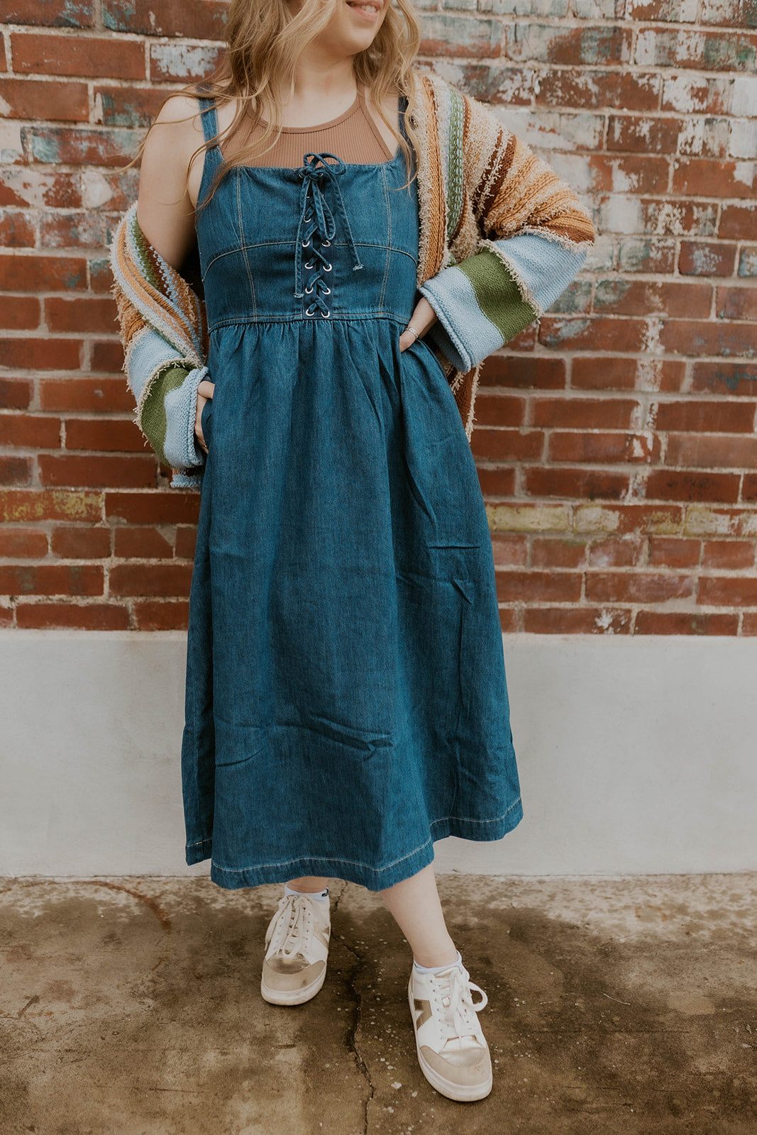 Lace Up Denim Midi Dress