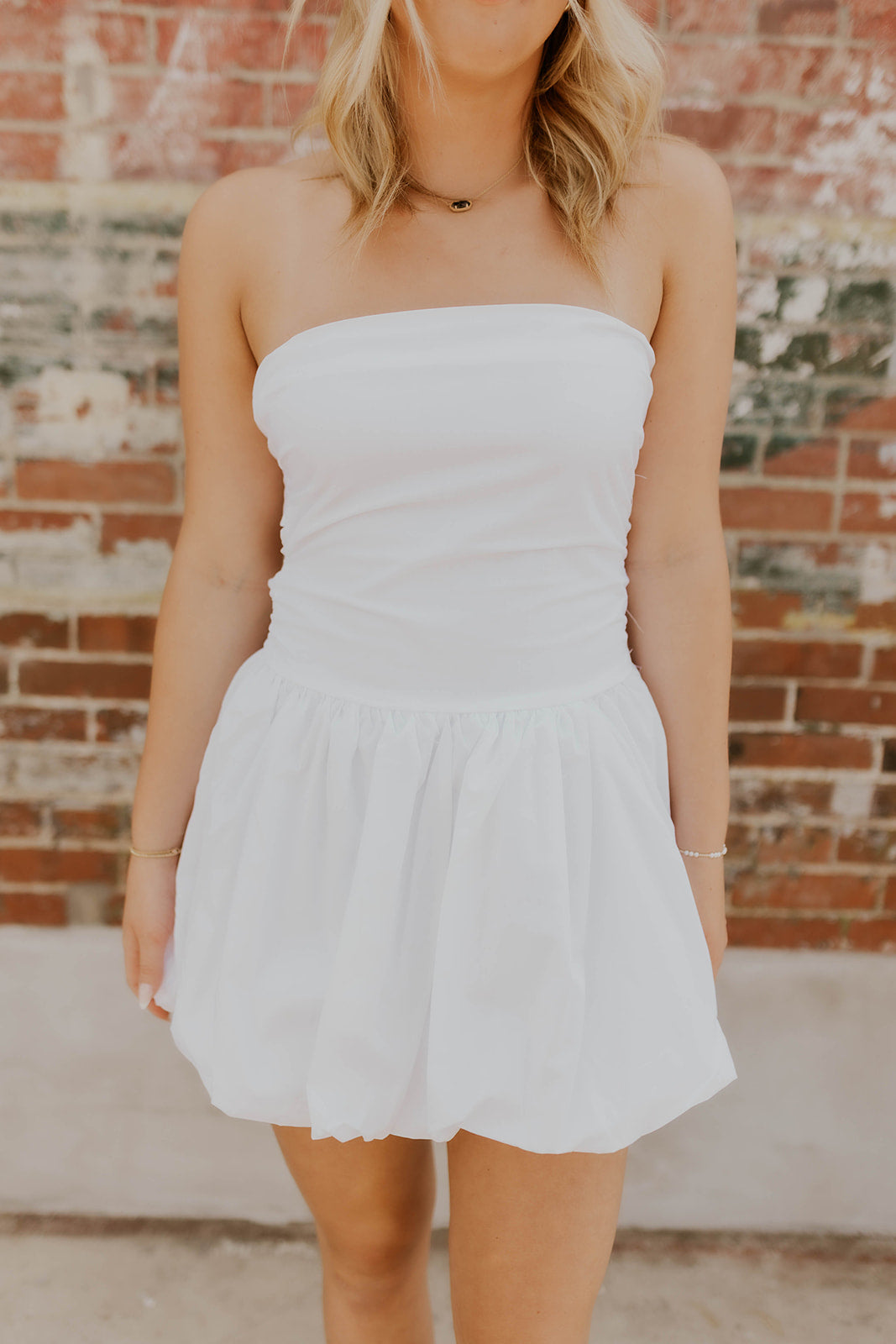 This strapless white bubble dress creates an irresistibly flattering silhouette that accentuates your best features. The playful bubble skirt adds volume in all the right places while maintaining a sophisticated look. Versatile enough to pair with heels for elegant evenings or with sandals for casual outings. Don't miss this must-have piece that transitions effortlessly from day to night.