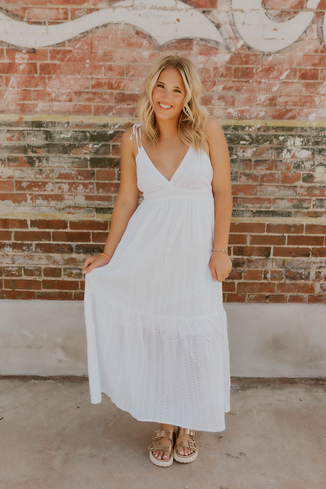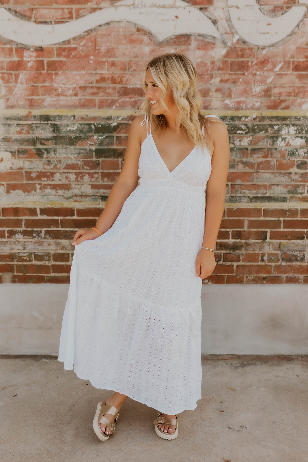 This White Eyelet Maxi Dress offers a flattering true-to-size fit with delicate eyelet detailing that adds a touch of elegance. Its maxi length and flowy silhouette make it perfect for any occasion, whether you want to dress it up for a special event or keep it casual for everyday wear. Embrace effortless style and comfort with this versatile wardrobe essential.