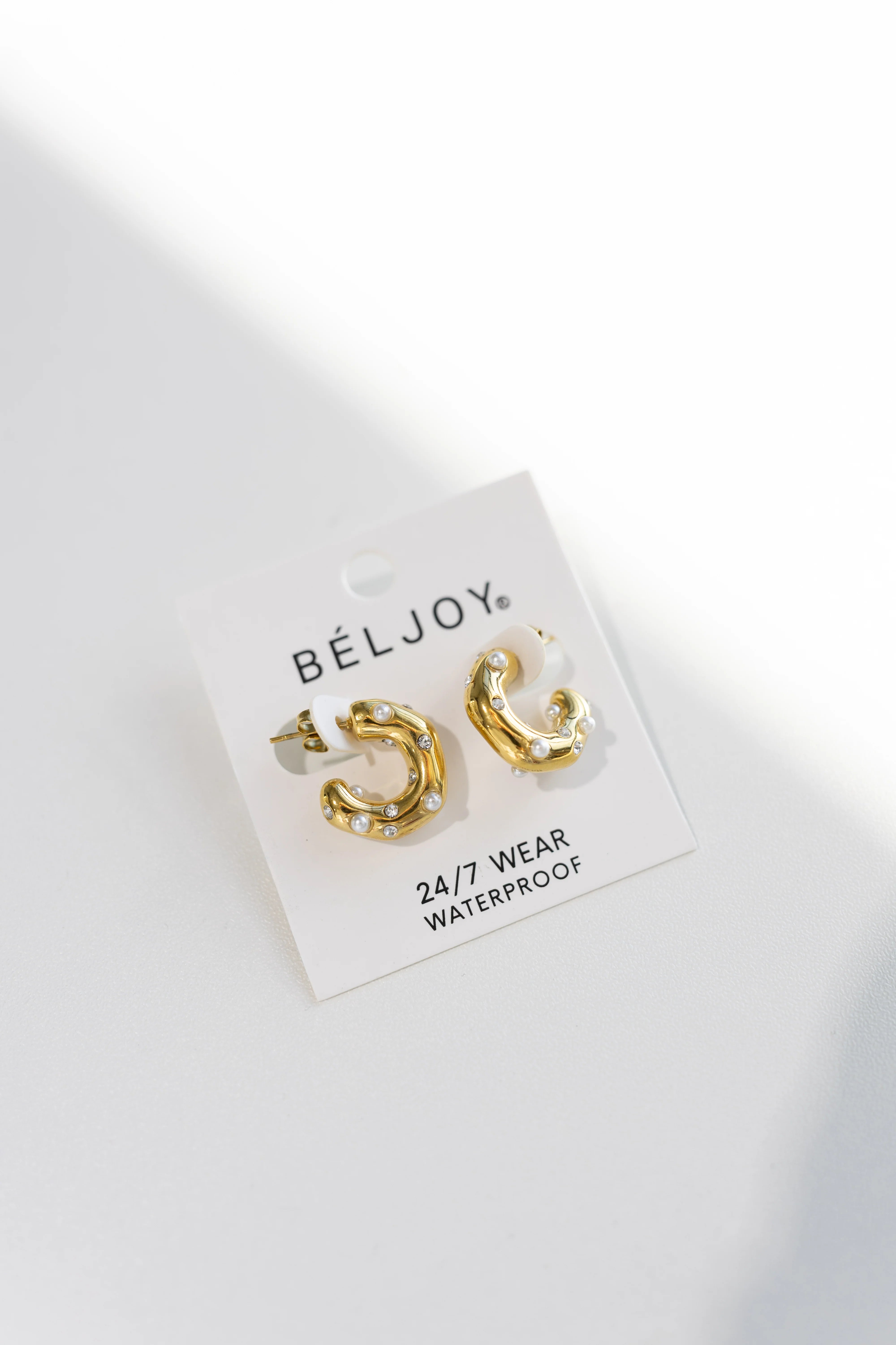 These adorable little hoops sparkle with crystals or charming pearls, adding a playful pop of color to any outfit.