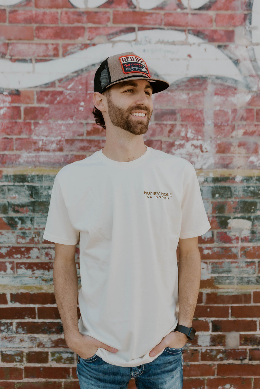 Our apparel is designed to keep you comfortable in your element. Honey Hole Tees are made of top of the line fabric that stands up to constant wear and tear without sacrificing fit or feel. Color: Natural This shirt is very soft and light with a more forgiving cut.