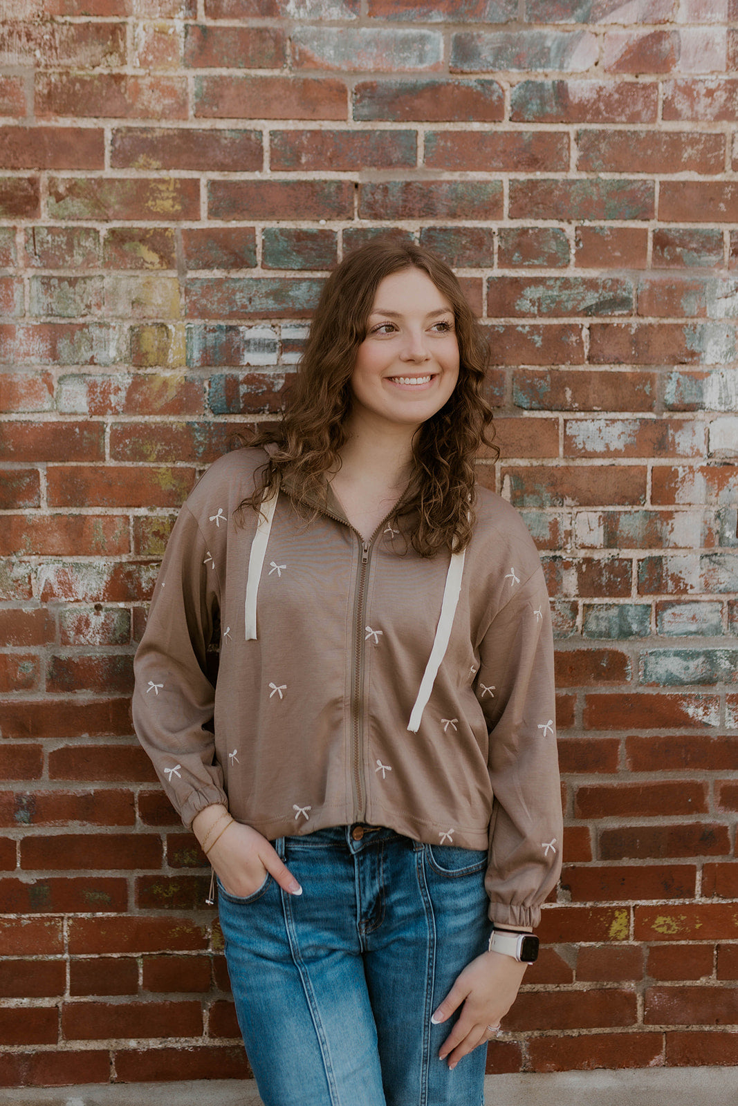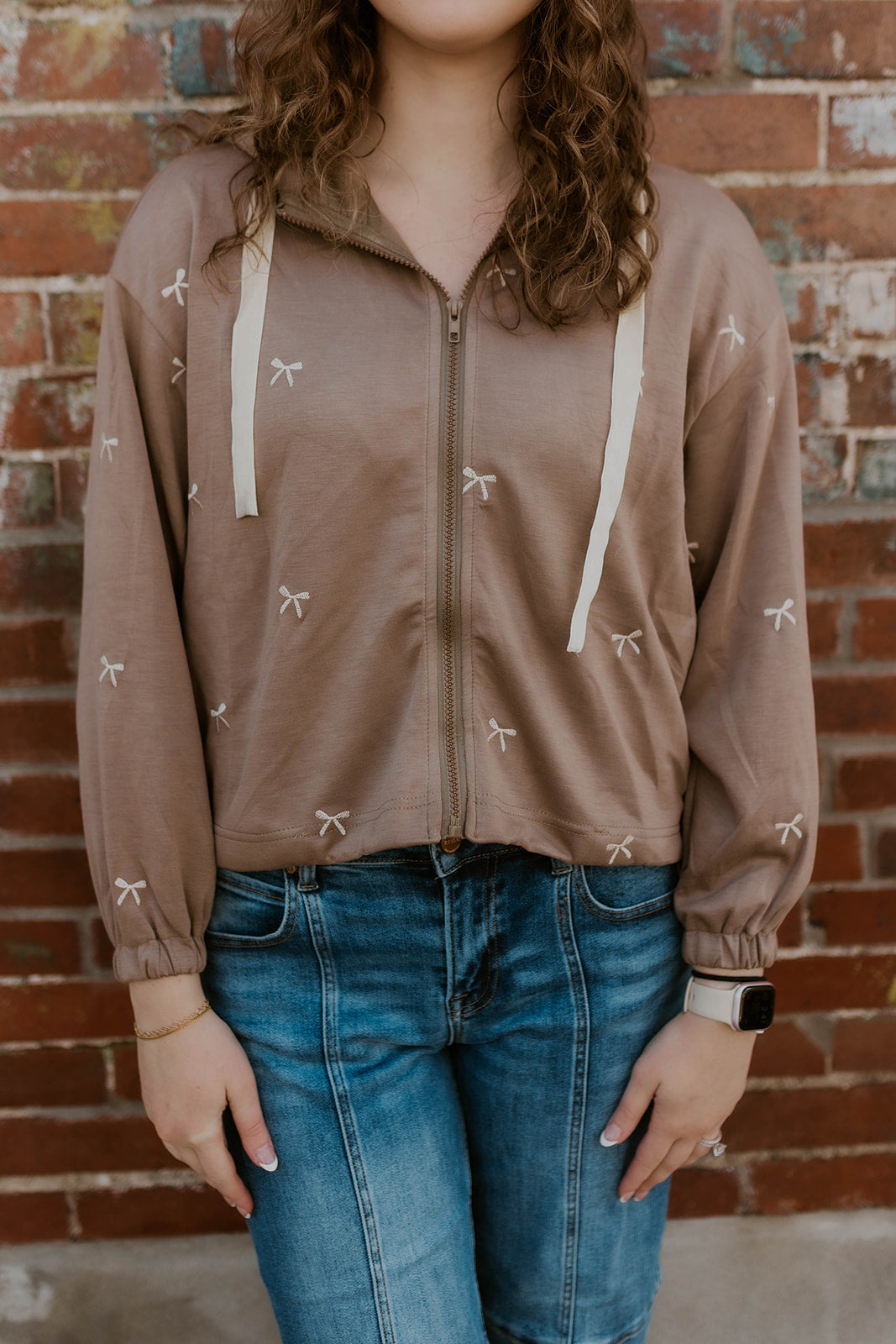 Stay warm and stylish with our Bow Embroidered Zip Up Hoodie! The scuba material ensures comfort and durability, while the embroidery detail adds a touch of elegance. This cozy hoodie is perfect for a casual day or a night out. Zip it up and feel effortlessly chic!