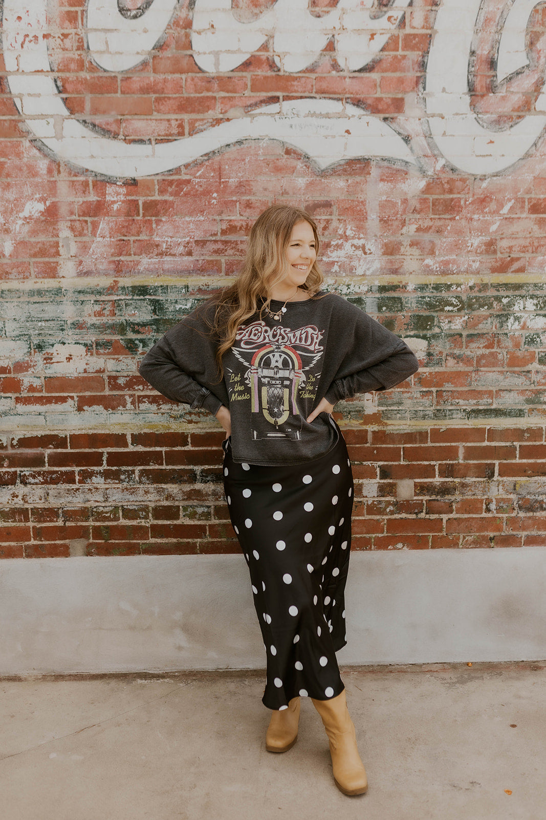 This Aerosmith sweatshirt combines effortless style with comfort, crafted from a soft burnout material that feels light and breathable. Designed in a one-size-fits-most cut, it offers versatile wear—perfect for dressing up or down. Wear it on or off the shoulder to match your mood and occasion, making it a must-have piece that adapts seamlessly to your wardrobe.