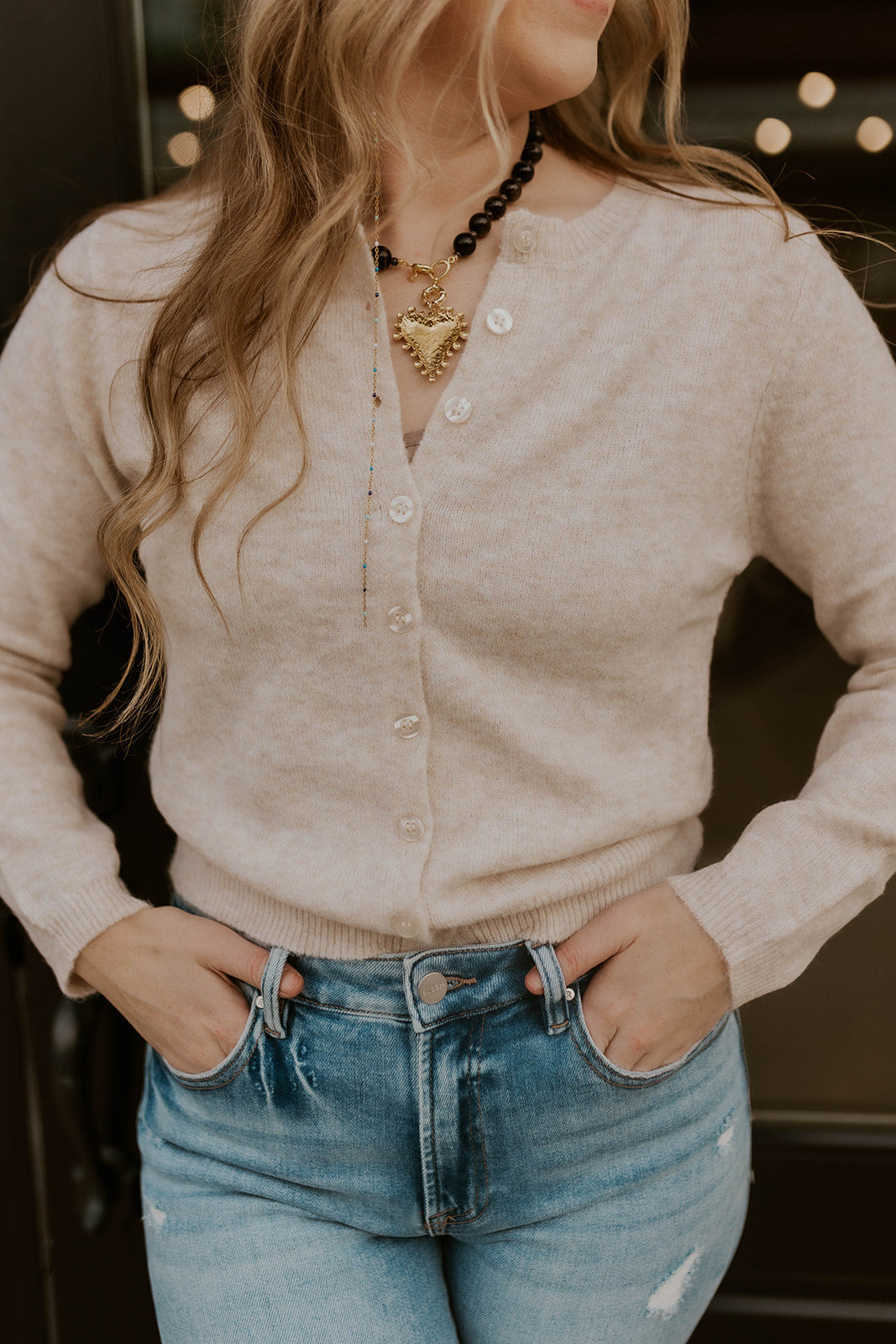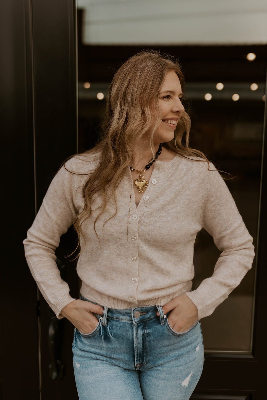 Elevate your everyday wardrobe with this cream button-down cardigan—the versatile piece you'll reach for constantly. Crafted from luxuriously soft fabric, it drapes beautifully with a fitted silhouette that flatters every frame. Fully functioning buttons make layering effortless, whether you're dressing it up over a blouse for the office or pairing it casually with your favorite tee. This is the cardigan that transitions seamlessly from season to season, occasion to occasion.