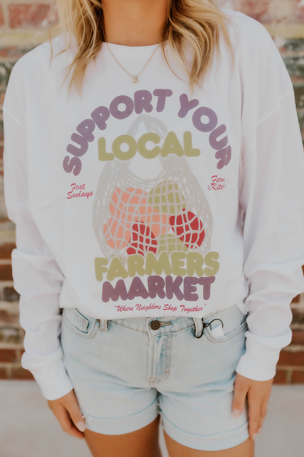 Embrace comfort and style with the Farmers Market Long Sleeve Graphic Tee. This oversized, super soft shirt features a bold graphic design, making it perfect for dressing up or down. Its relaxed fit ensures all-day comfort, while the long sleeves add versatility for cooler days. Whether paired with jeans or layered under a jacket, this tee effortlessly blends casual ease with standout style.