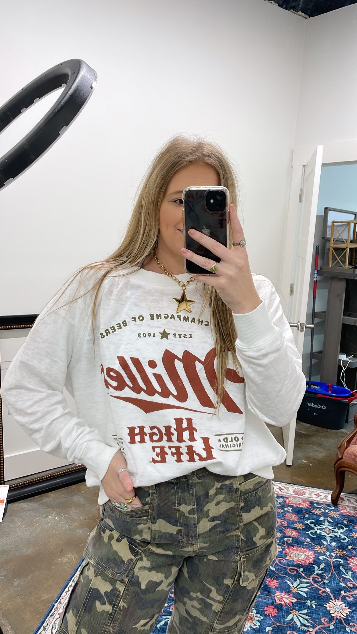 Experience effortless style with the Miller Oversized Sweatshirt, crafted from soft burnout material for a textured, lived-in feel. Its relaxed fit lets you dress it up with sleek accessories or keep it casual with your favorite jeans, making it a versatile staple for any wardrobe. Comfortable, stylish, and adaptable—this sweatshirt is designed to elevate your everyday look.