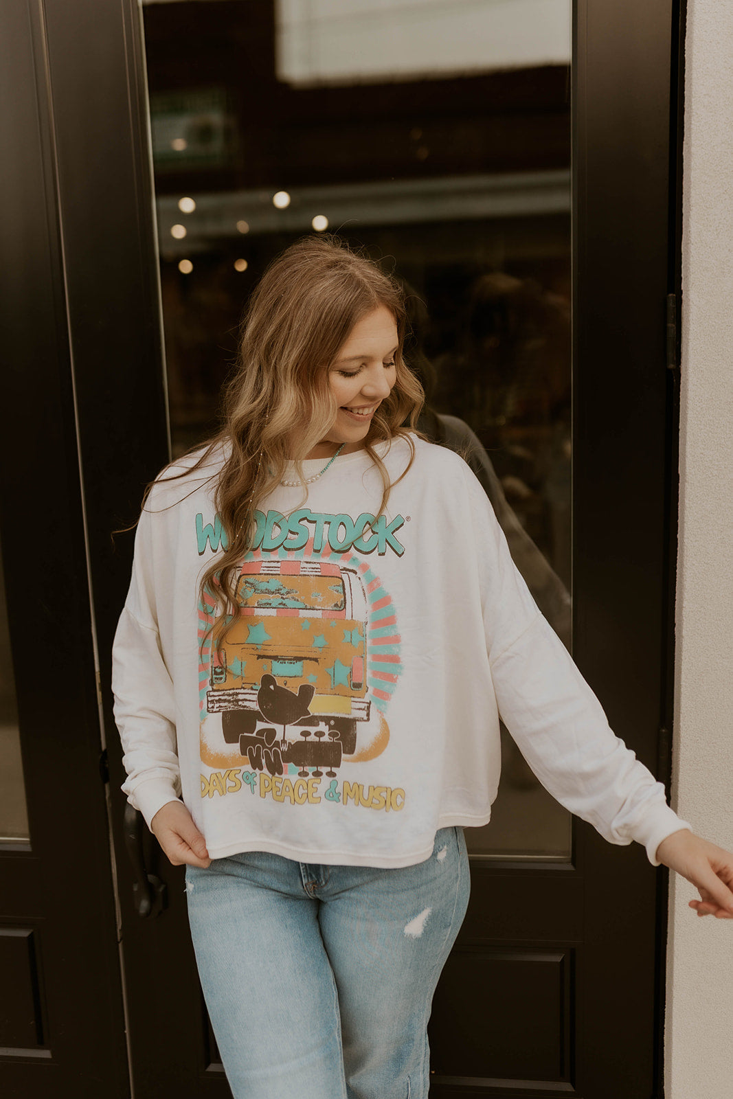 Make a statement with this oversized Woodstock graphic sweatshirt that brings instant personality to any outfit. The relaxed, playful cut pairs perfectly with jeans for casual vibes or layers beautifully under blazers for elevated looks. Vibrant color pops and iconic imagery transform this piece into a conversation starter that works whether you're dressing down for the weekend or elevating your everyday style. One size fits most, so slip it on and let your fun side shine through.