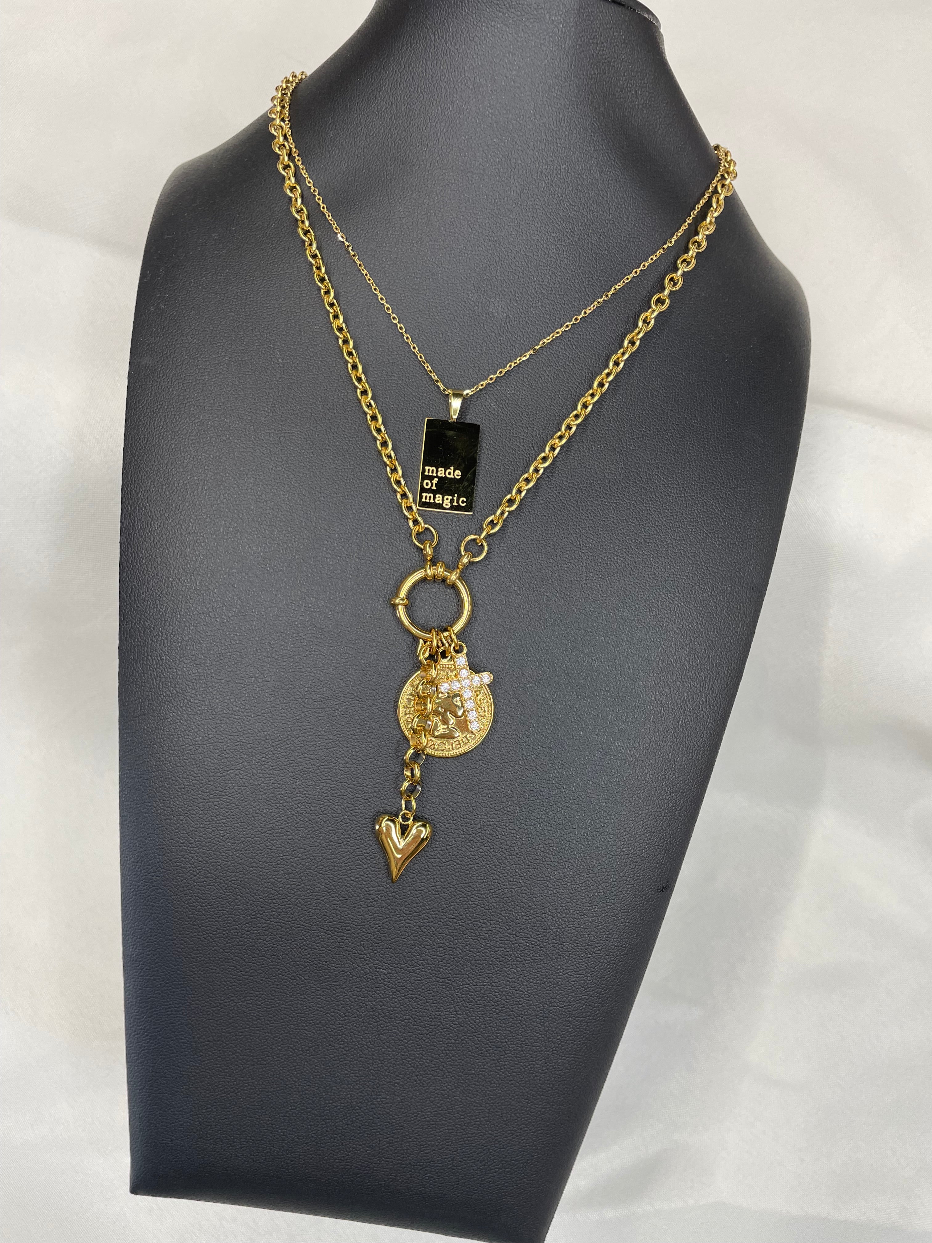 Elevate your everyday style with this stunning 18K gold-plated stainless steel necklace, featuring a delicate heart, coin, and cross charm combination that speaks to both elegance and meaning. Crafted with waterproof and hypoallergenic materials, this piece is designed to withstand daily wear while remaining gentle on sensitive skin, making it the perfect accessory for any occasion. Invest in a versatile treasure that seamlessly transitions from casual to sophisticated, offering timeless appeal that complements any wardrobe.