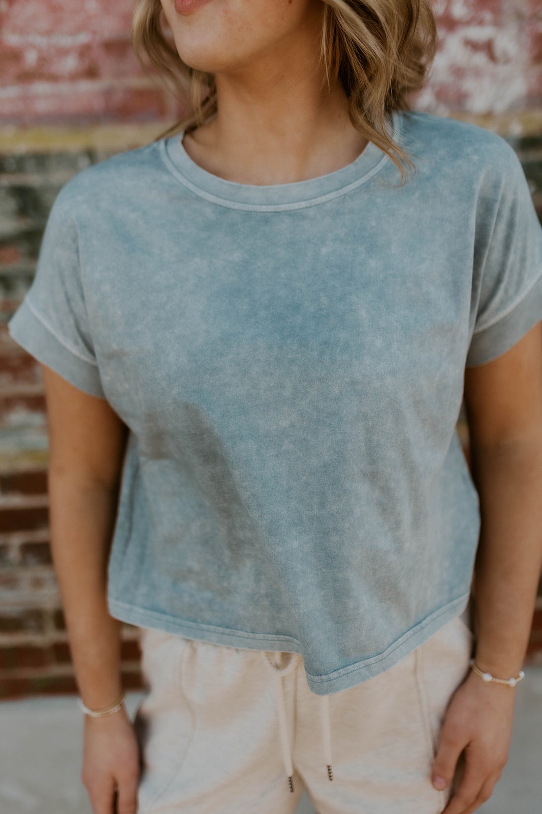 Effortlessly versatile, this stone-washed basic tee transitions seamlessly from casual to polished. The slightly cropped silhouette flatters any frame while maintaining that coveted relaxed vibe. Layer it, tuck it, or wear it solo—this slate blue essential adapts to your style.