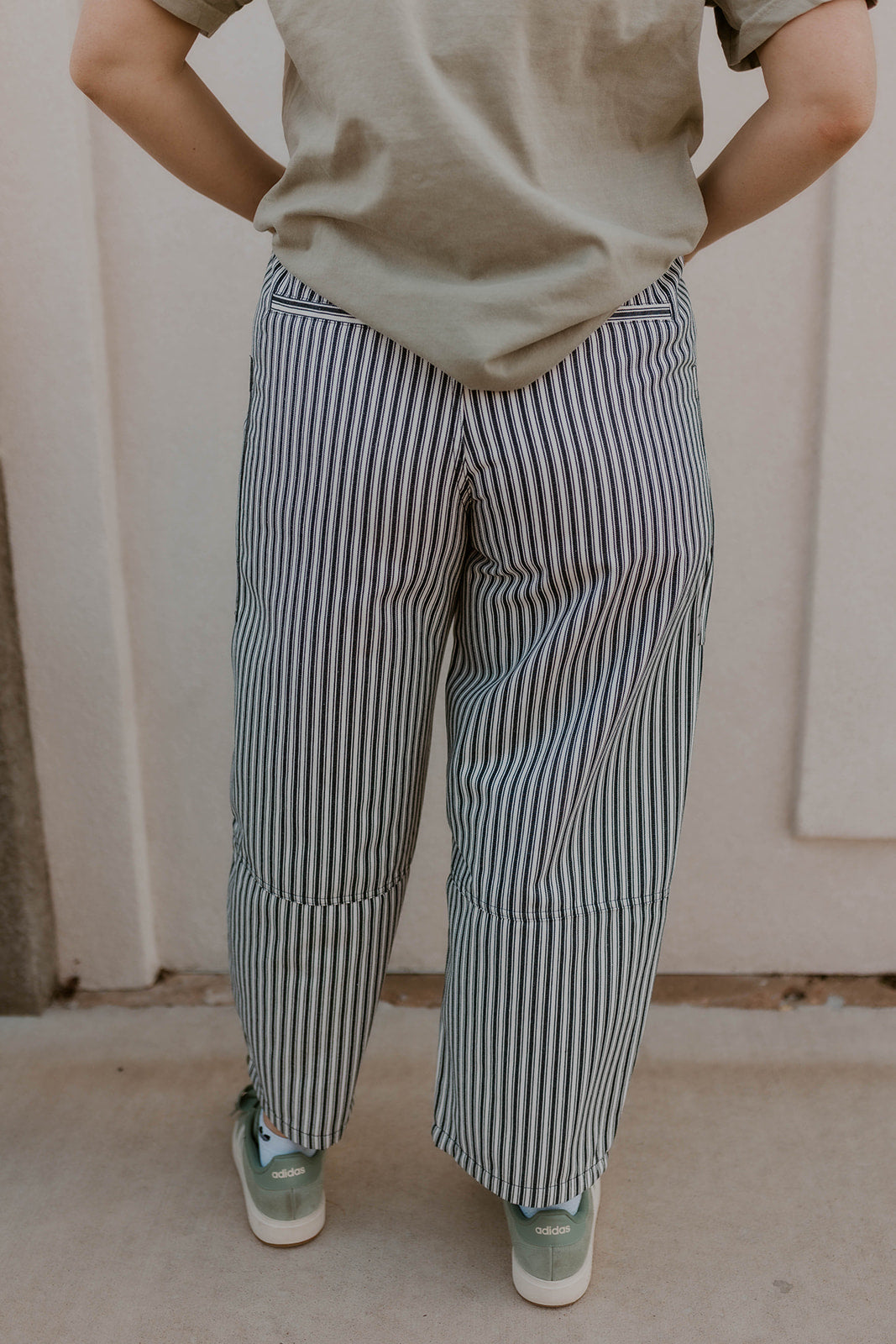 Effortless style meets everyday comfort in these navy striped wide leg pants. The relaxed fit drapes beautifully while the stretchy waist ensures all-day ease—no zipping or buttoning required. Pull on and go, whether you're dressing them up with a blazer or keeping it casual with a tee. Versatile enough for the office, weekend outings, or anywhere in between.