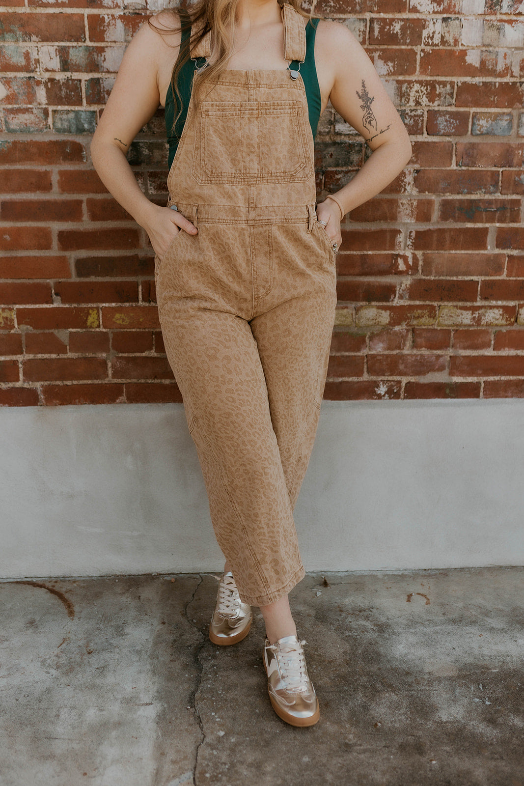 Embrace bold style with the Wild Side Overalls, featuring a camel monochromatic leopard print on durable denim. Adjustable straps ensure a perfect fit, while the versatile design lets you effortlessly dress up for a night out or keep it casual during the day. These overalls bring fierce fashion and comfort together for your next standout look.