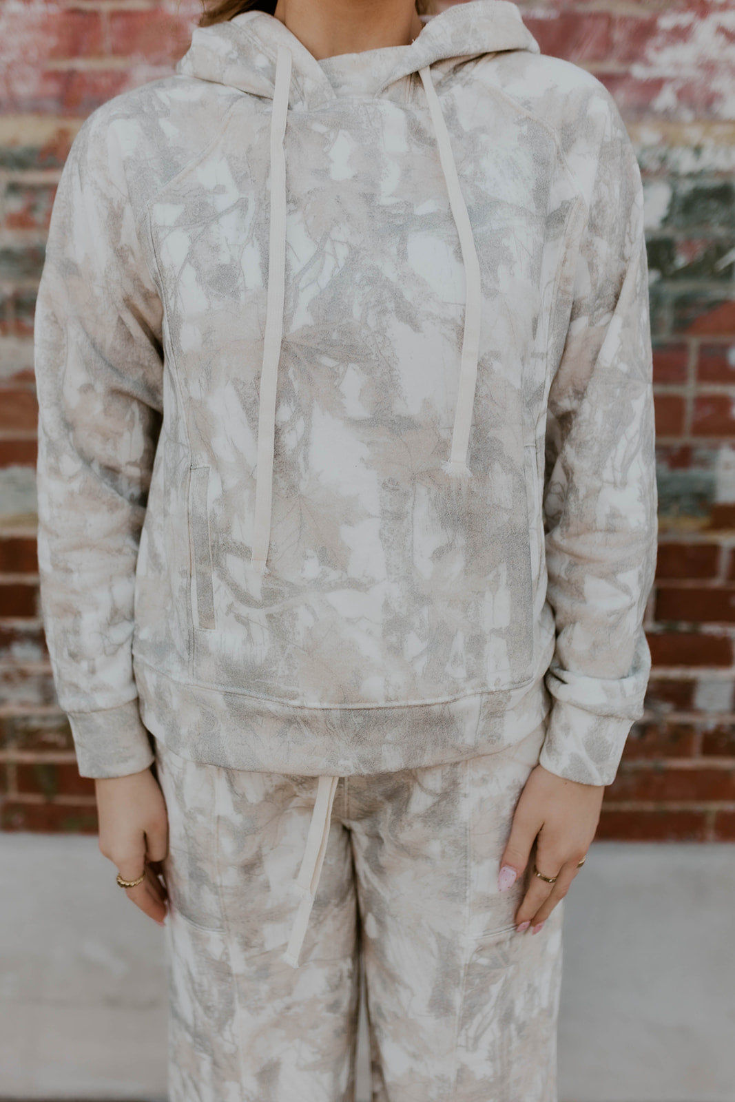 Wrap yourself in effortless comfort with our Neutral Camo French Terry Hoodie. Crafted from soft, breathable French terry fabric, this piece delivers the cozy feel you crave without compromising on style. The functional kangaroo pocket keeps your hands warm and essentials close, while the understated camo pattern pairs perfectly with our Neutral Camo French Terry Joggers for a coordinated, laid-back look. Whether you're lounging at home or stepping out casually, this hoodie becomes your go-to layer for relaxed sophistication.