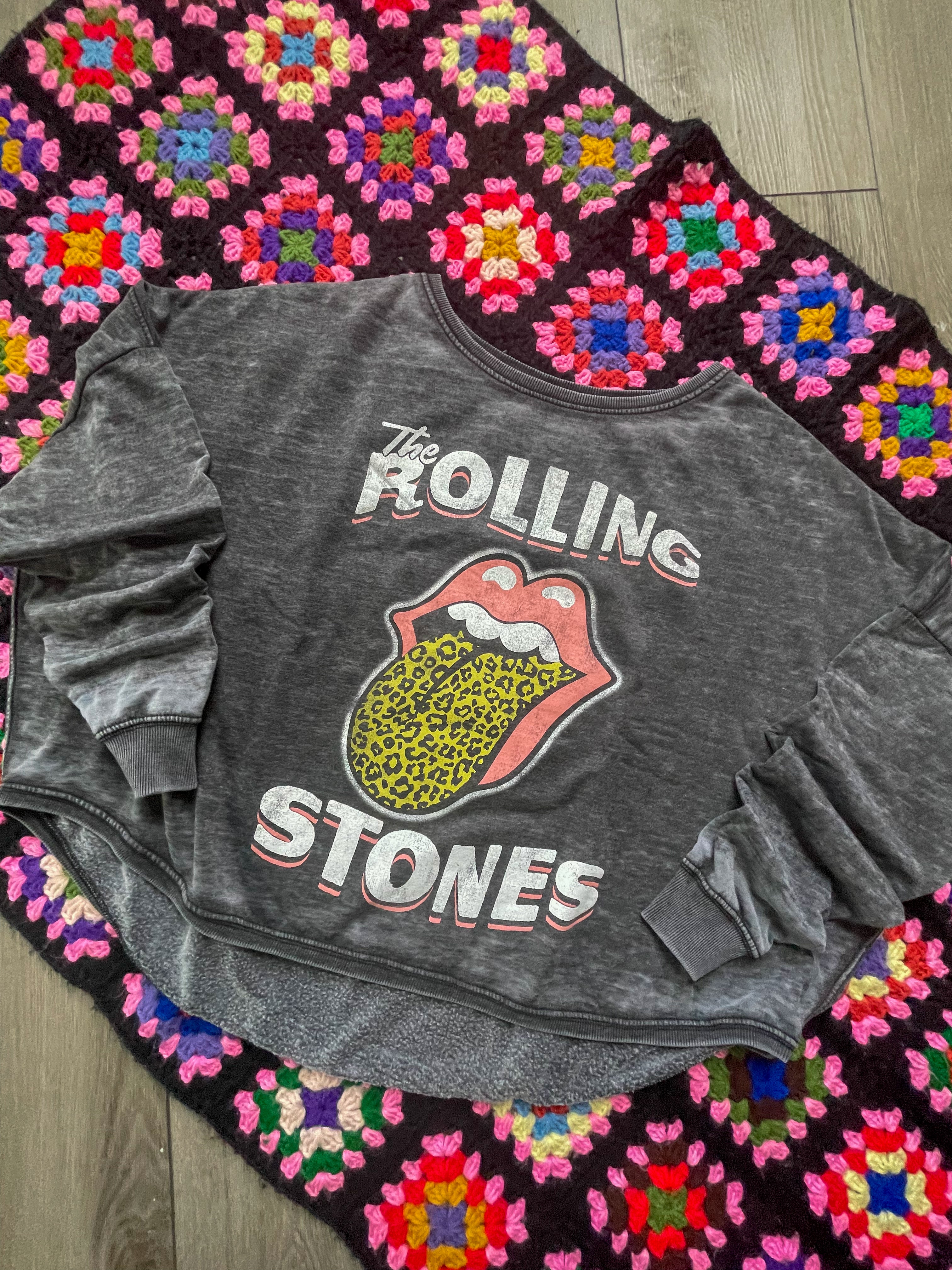 Make a statement with this oversized Rolling Stones graphic sweatshirt that brings instant personality to any outfit. The relaxed, playful cut pairs perfectly with jeans for casual vibes or layers beautifully under blazers for elevated looks. Vibrant color pops and iconic imagery transform this piece into a conversation starter that works whether you're dressing down for the weekend or elevating your everyday style. One size fits most, so slip it on and let your fun side shine through.