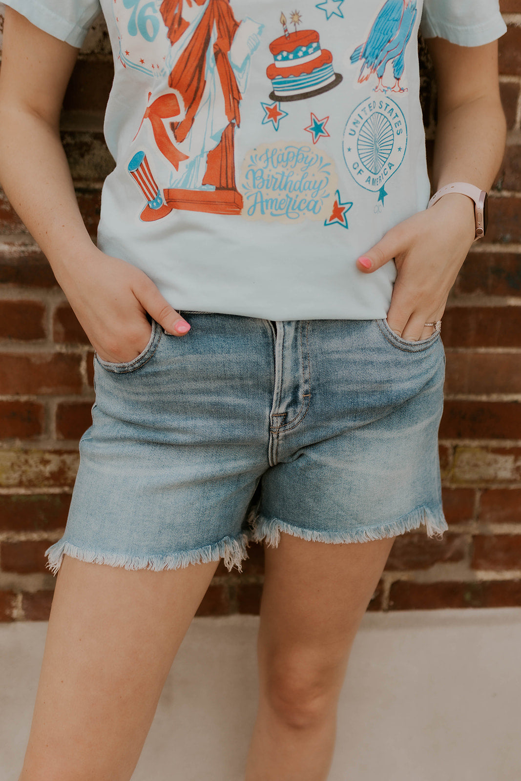 Experience ultimate comfort and style with the Bailey High Rise Denim Shorts. Featuring a flattering high-rise fit and a clean wash, these shorts offer a modern, versatile look. The frayed hem adds a touch of effortless edge, while the super soft, stretchy fabric ensures all-day comfort and freedom of movement. Perfect for warm days when you want to feel confident and relaxed.
