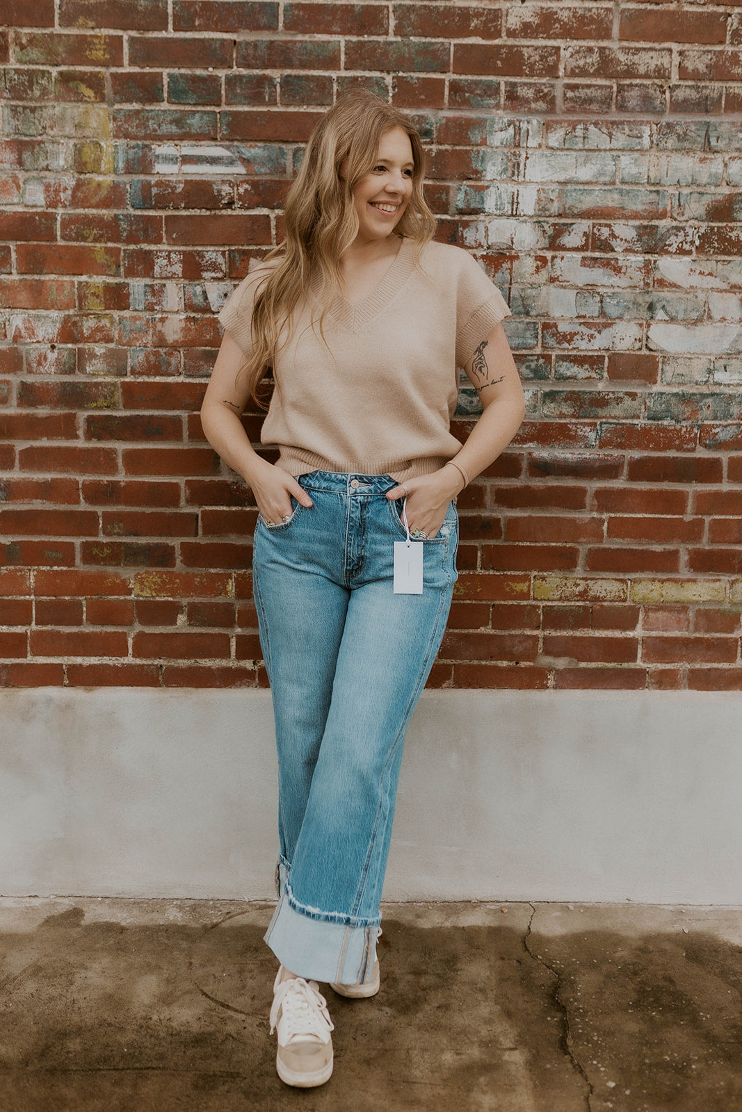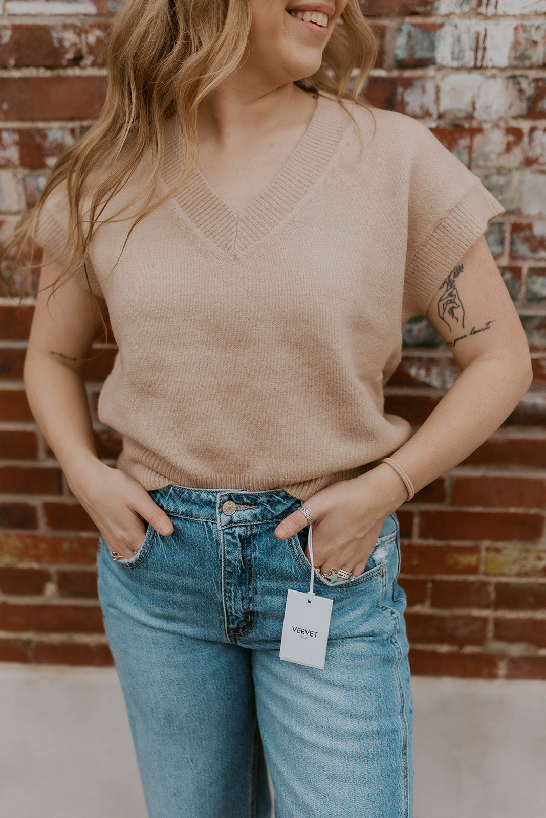 The Draw The Line V-Neck Sweater combines a flattering v neckline with short sleeves for versatile style. Cozy and easy to wear, this pullover sweater effortlessly dresses up or down, making it a go-to piece for any occasion. Embrace comfort without sacrificing chic appeal.