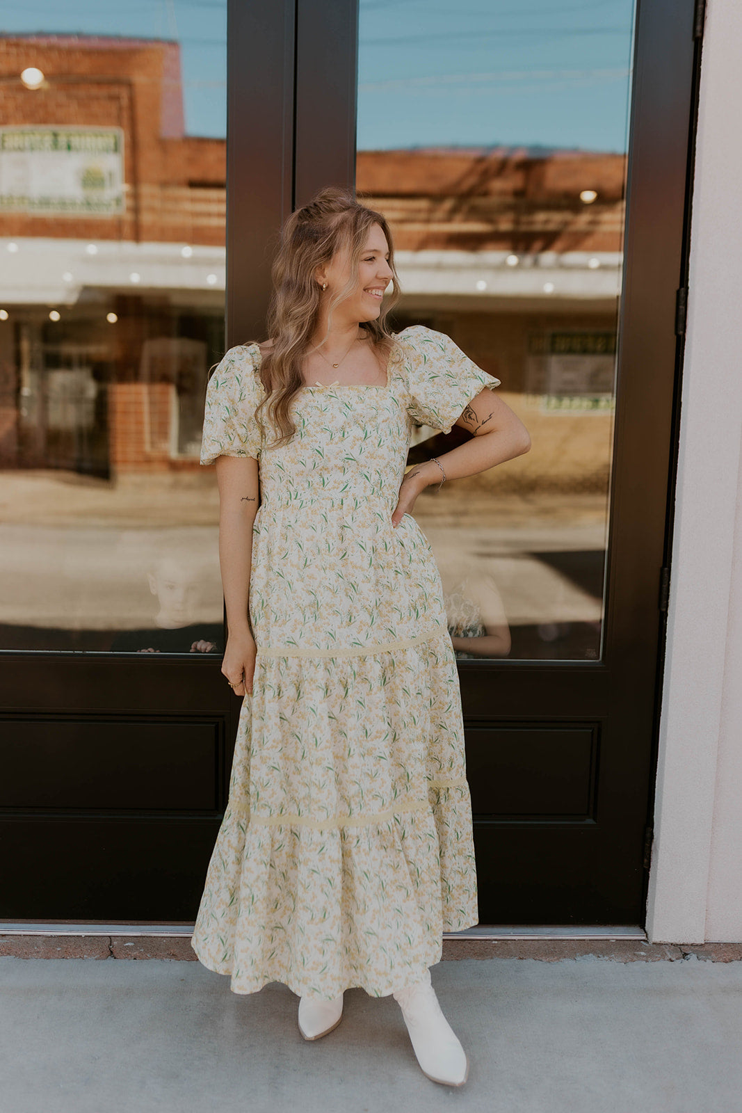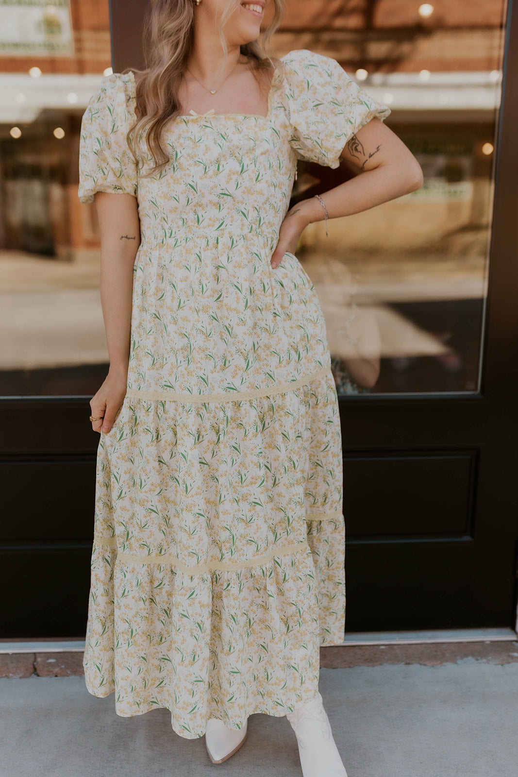 Embrace effortless elegance with the Marigold Dreams Dress, a spring essential featuring delicate floral patterns and charming tiered layers. The thoughtfully designed silhouette flatters every figure while offering versatile styling—pair it with heels for a polished evening look or sneakers for casual daytime charm. Perfect for transitioning through the season with grace and ease.