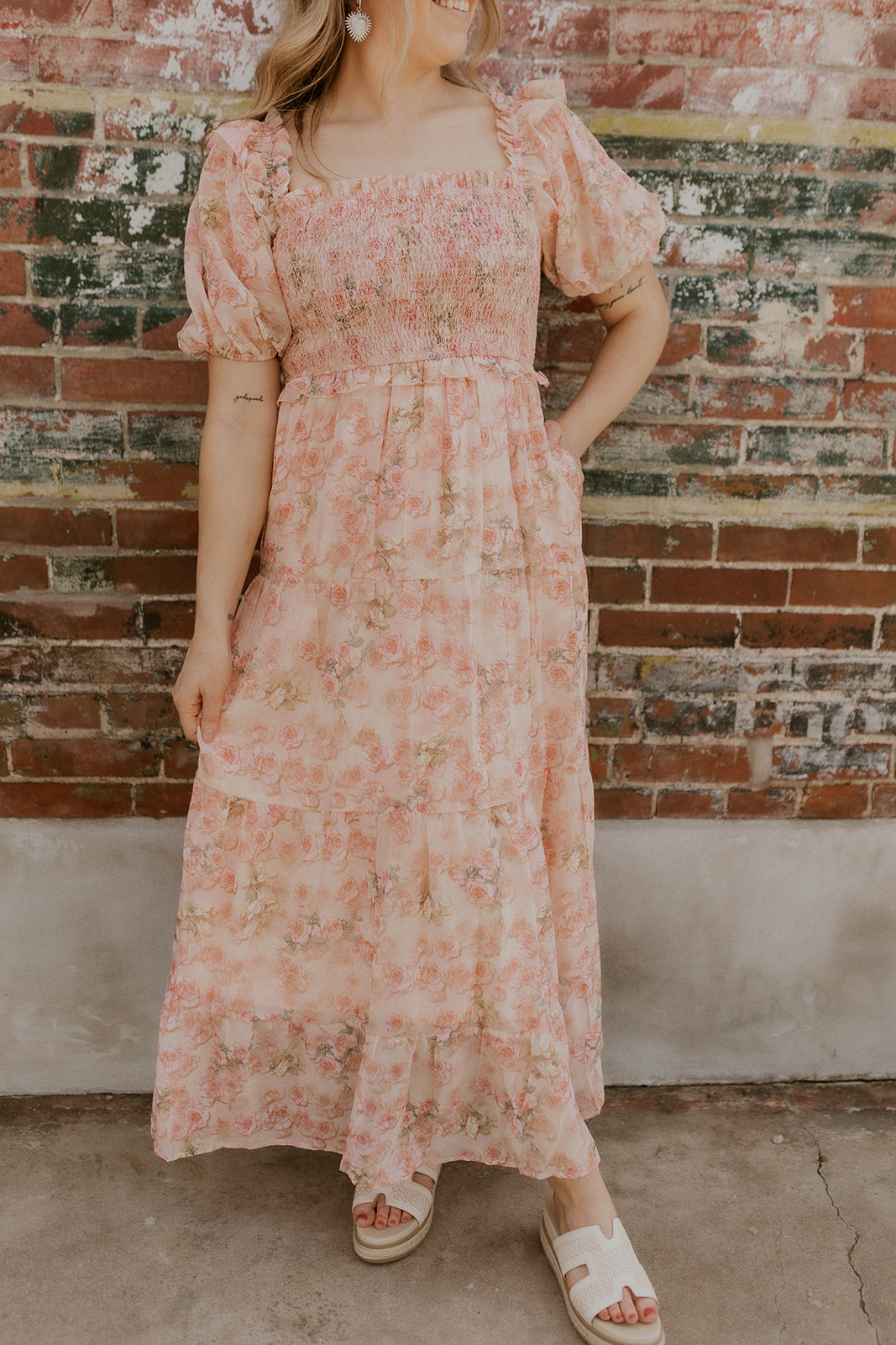 The Garden Party Maxi Dress is your go-to piece for effortless elegance. Crafted from stunning fabric that drapes beautifully, this dress features a stretchy smocked bust that flatters your figure while keeping you comfortable all day long. Wear it on or off the shoulder for versatile styling options—dress it up for special occasions or keep it casual for everyday wear. The soft, stretchy material moves with you, making it perfect for any season or celebration.