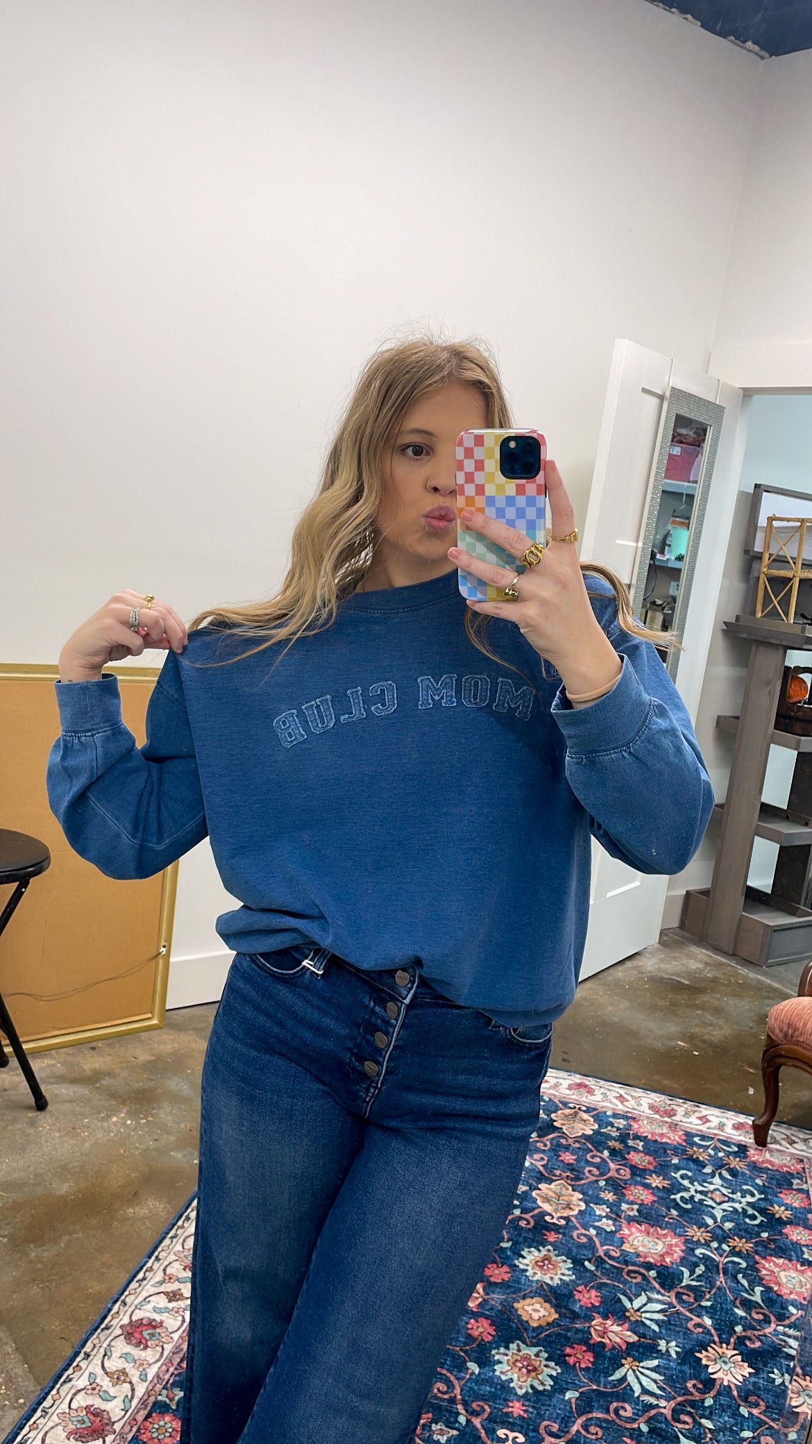 Embrace effortless style with our Mom Club Patchwork Sweatshirt, featuring a distinctive mineral wash finish that gives it authentic vintage character. The patchwork design adds visual interest and personality to classic denim tones, creating a piece that works as hard as you do. Soft, comfortable, and undeniably cool, this sweatshirt transitions seamlessly from school pickup to weekend hangouts. Perfect for moms who refuse to sacrifice style for comfort.