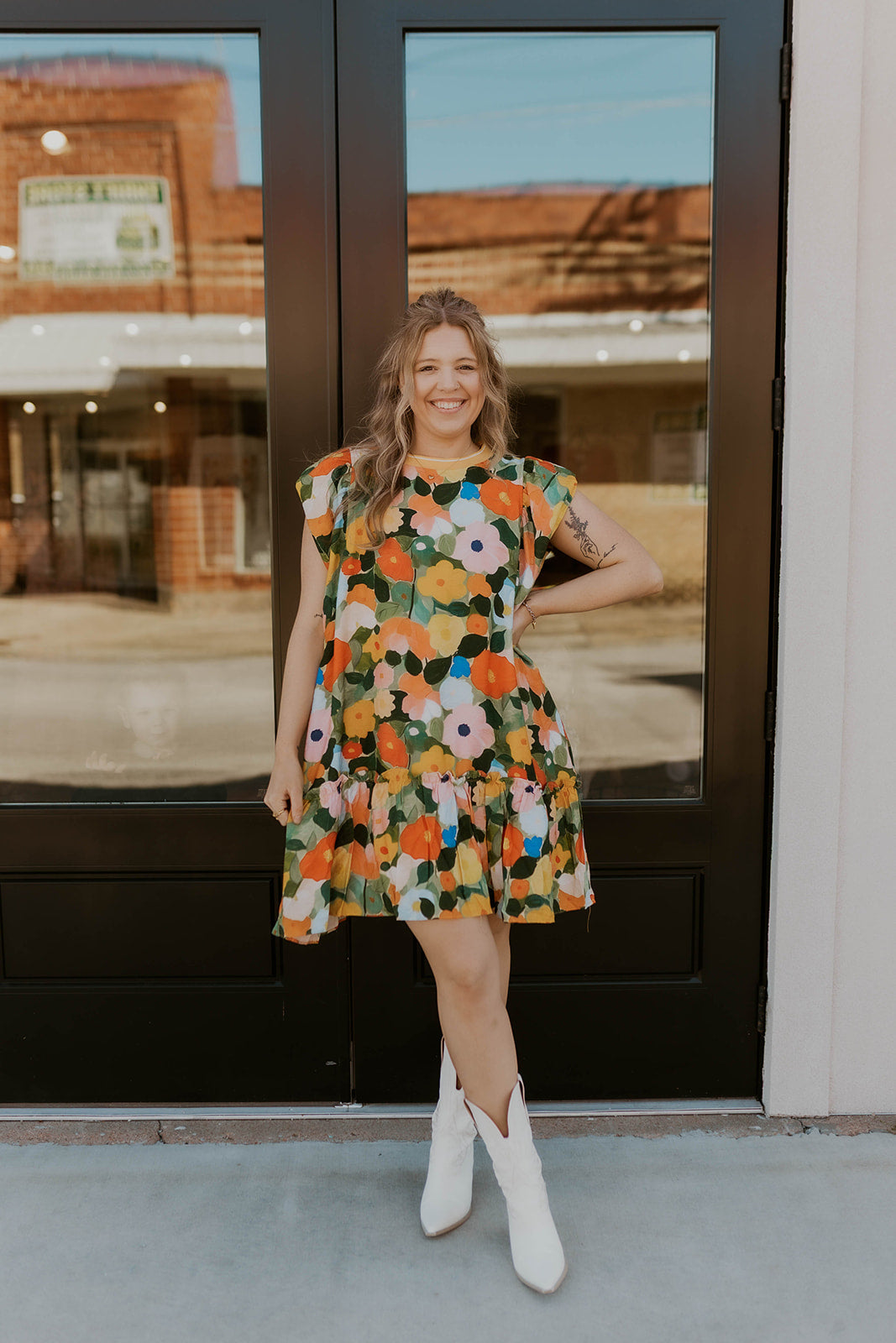 Embrace effortless style with this loose-fitting dress featuring a charming floral print in orange/ mustard tones. Perfect for dressing up or down, this versatile piece transitions seamlessly from casual daytime wear to evening occasions. The relaxed silhouette offers comfort without compromising on elegance, making it an ideal addition to any wardrobe. Whether paired with sneakers for a laid-back look or dressed up with heels and accessories, this playful floral design brings a fresh, feminine touch to your everyday rotation.