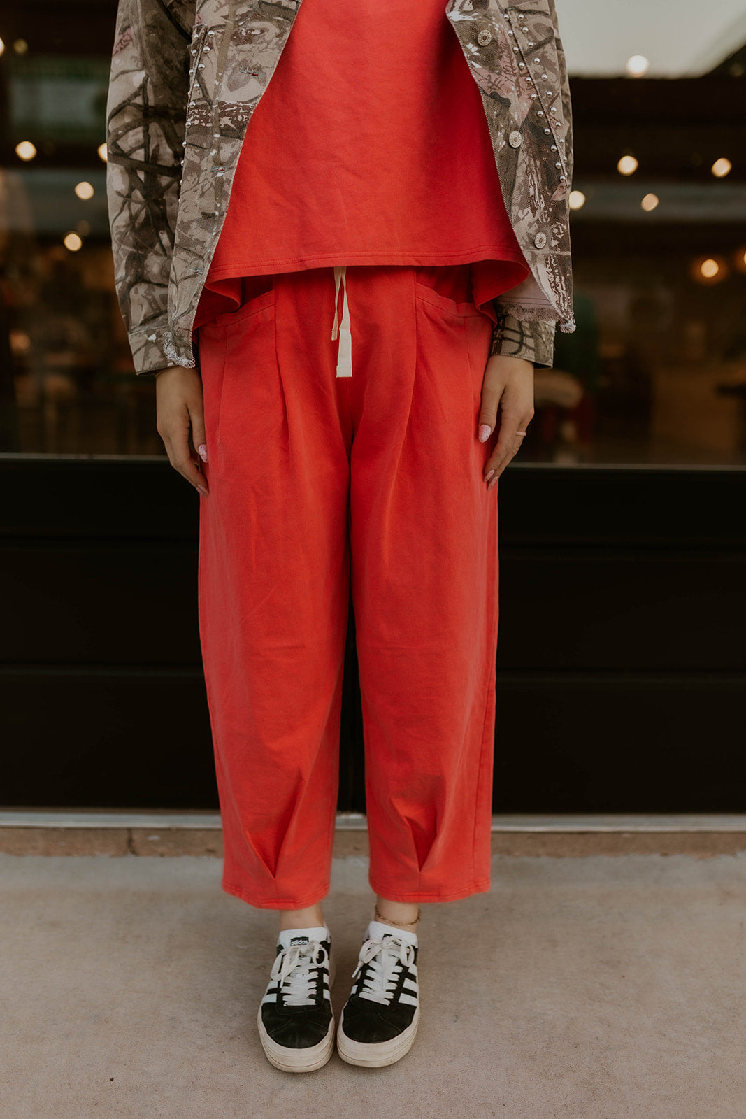 Elevate your wardrobe with this versatile mineral wash set that effortlessly transitions from casual to polished. The soft short sleeve top features a trendy mineral wash finish, paired with tailored pleat detail pants that flatter your silhouette. An adjustable drawstring waist ensures the perfect fit every time. Whether you're heading to brunch or the office, this coordinated set delivers style and comfort in one complete package.
